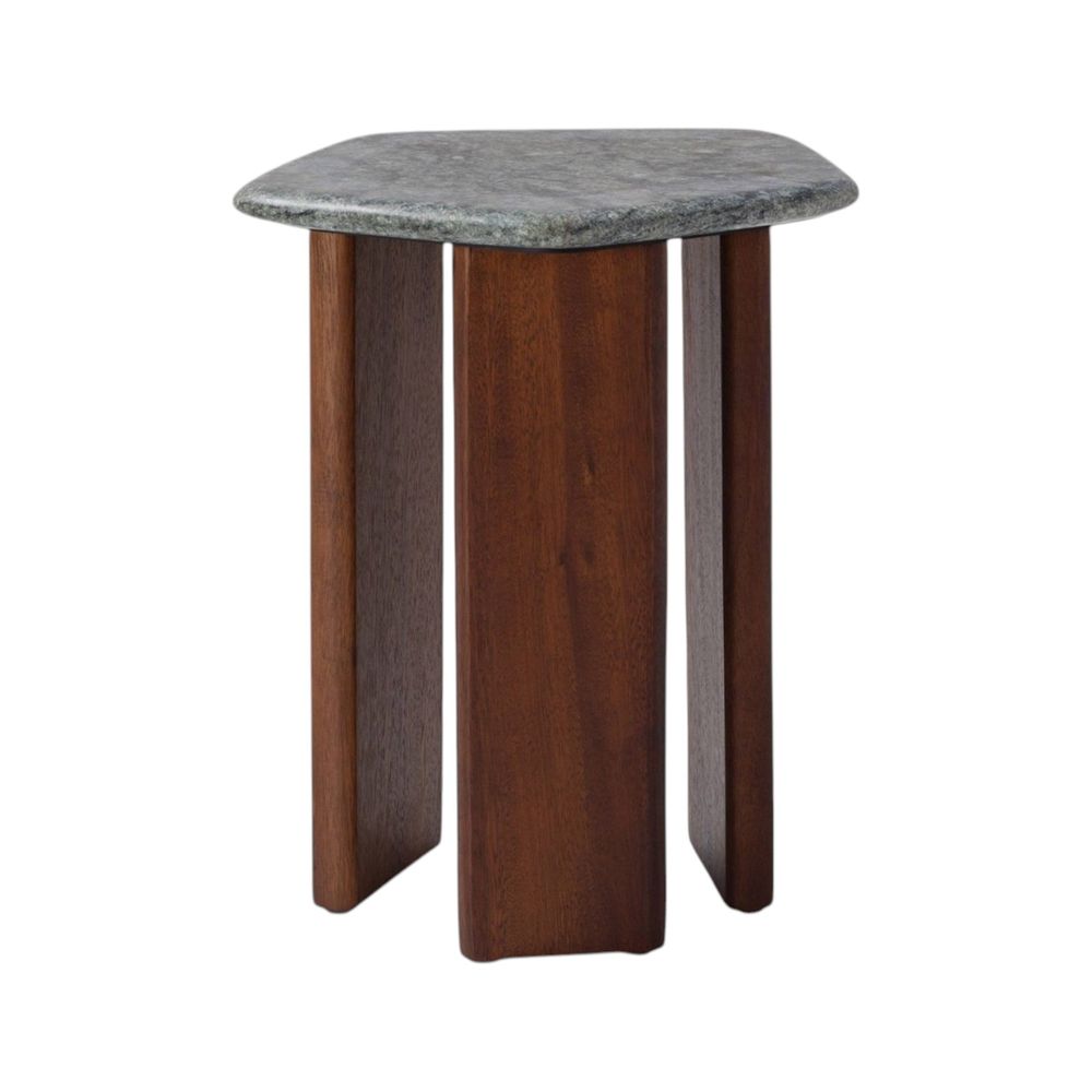 A mesa lateral Kira conta com um design contemporâneo, marcado por linhas retas minimalistas. Possui tampo em pedra natural com bordas suavemente arredondadas, que descansa sobre uma estrutura robusta de madeira, composta por três apoios verticais que garantem estabilidade e leveza visual. Seu formato pentagonal orgânico adiciona um toque de dinamismo e sofisticação ao ambiente. Disponível em diferentes acabamentos de madeira e pedras naturais, a Kira adapta-se com facilidade a diferentes estilos e espaços, unindo funcionalidade com uma elegância atemporal.
